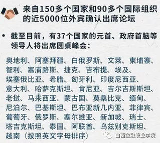 一带一路国际合作高峰论坛超过150个国家及90个国际组织派代表参加。