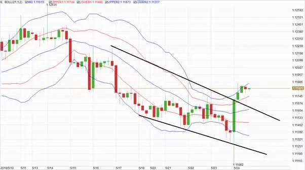 从4小时图来看,欧元美元突破了本周以来的下降通道,目前回踩尚未跌破通道压力,但并未做出实际测试突破,多方仍须谨慎。若回测支撑1.1160有效,则可望延续上攻前高1.1230一线。
