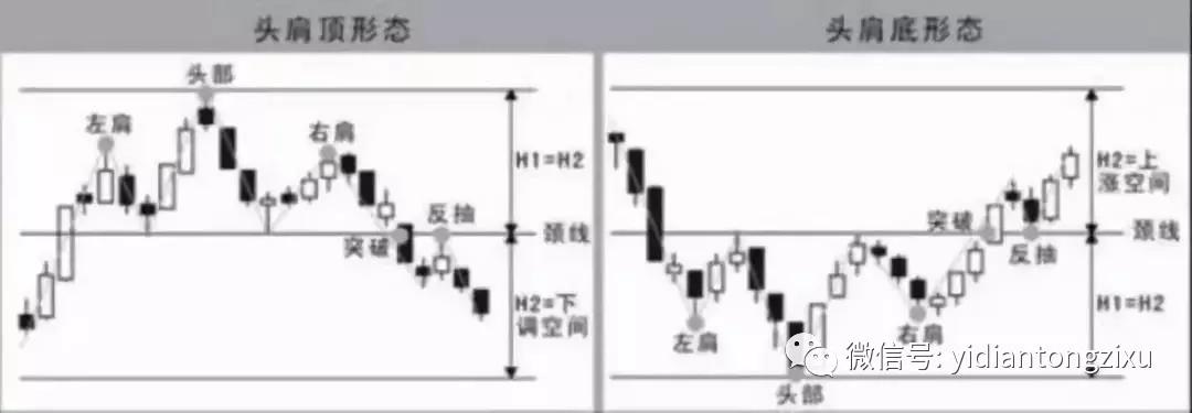头肩顶形态与头肩底形态相反,但也有一定的区别: