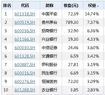 注:这是上证50实时权重, 50ETF目前只公开去年四季度末的权重,中国建筑被恒瑞医药顶替,因此有出入。
