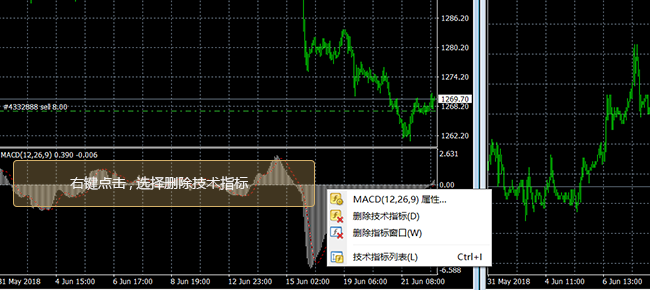 选择技术指标范围内单击鼠标右键,选择【删除技术指标】