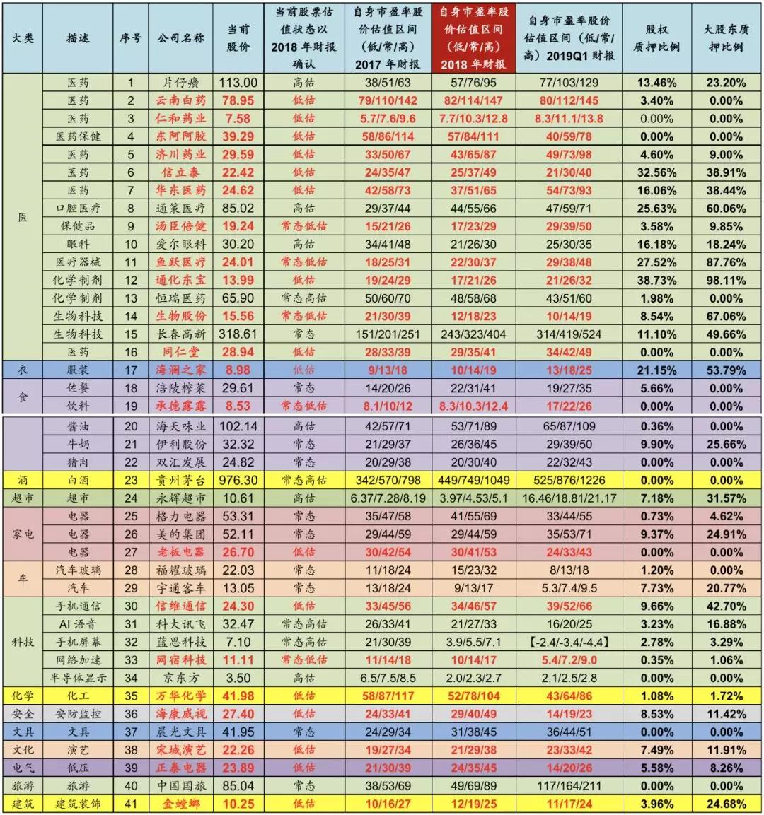 3)2018年年报及2019年Q1财报已经更新到估值数据,同时更新了全部质押股权的比例。