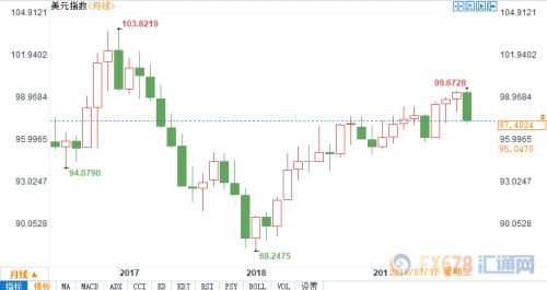 10月初因其他主要货币因为经济前景黯淡及宽松预期升温而走贬,美国经济仍是差中最优,这使得避险资金流入美元,从而带动美元指数创下两年半高点至99.6728。