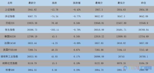 全球主要市场行情一览