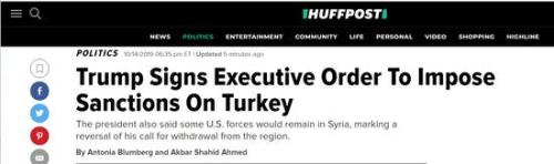 美国白宫此前发布官方声明表示,总统特朗普表示将会很快签署行政令,对现任及前任土耳其政府官员和其他涉及土耳其在叙利亚东北部军事行动的人实施制裁。此外,美国将对土耳其的钢材关税提升至50%,回到5月减税之前的水平,并立即停止与土耳其方面的关于1000亿美元贸易协议的谈判。