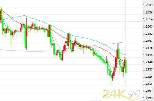 英镑/美元日内最低触及1.2417,距离上周触及的27个月低点1.2382仅咫尺之遥。欧美时段盘中汇价一度反弹至1.2455高位,之后自高位震荡回落。