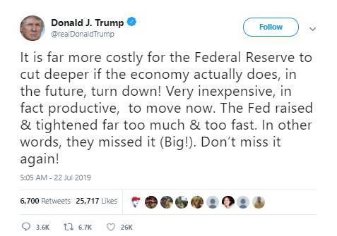 特朗普还指出,如果美国经济在未来下滑,美联储降息的成本要高得多。美联储现在采取措施是不费力而且很有成效的,并称美联储加息太多,收紧政策速度太快。
