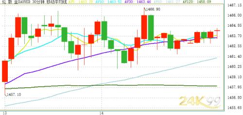 周三美市盘中,受贸易相关消息影响,市场避险情绪迅速升温,现货黄金价格一度短线拉升逾6美元,刷新日高至1466.90美元/盎司。周四亚市早盘,现货黄金位于在1464美元/盎司附近。
