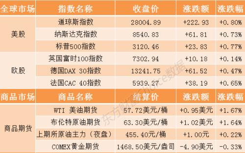 美国市场:美股三大股指集体收涨并均创历史新高。道指涨逾220点,首次站上28000点。
