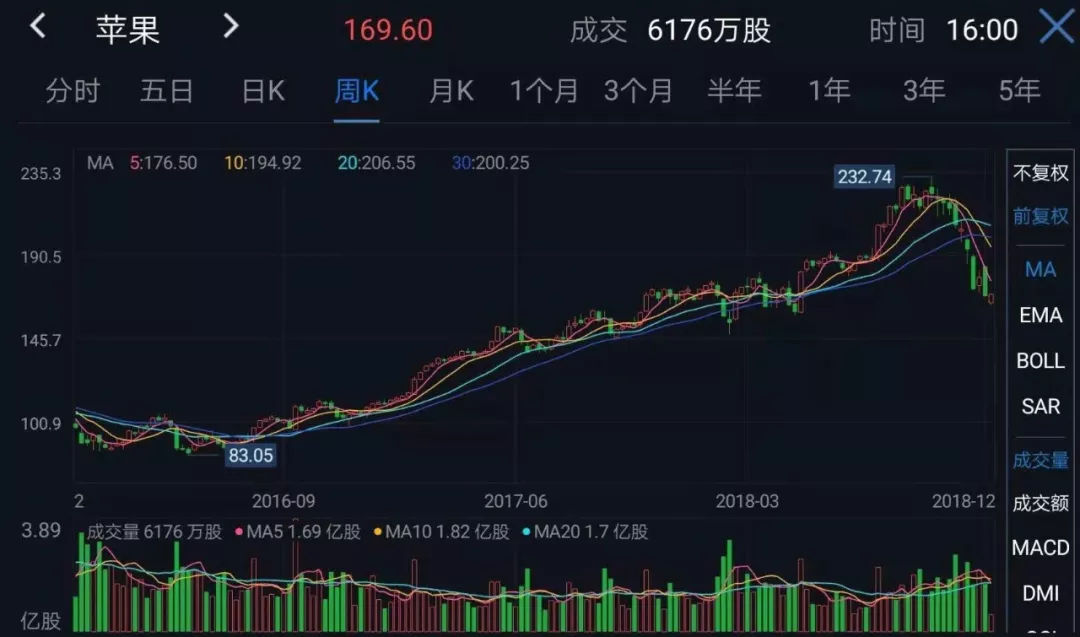 这段时间对于苹果来说,可谓“黑暗”时刻,多份报告显示iPhone XS、XR系列手机不销量不及预期,股价从几个月前的高点下跌超过25%。
