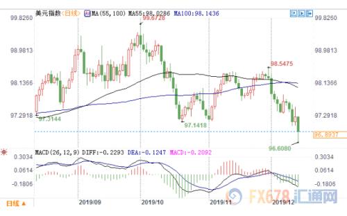 截至北京时间15:50,美元指数报96.885,日内跌幅0.41%。