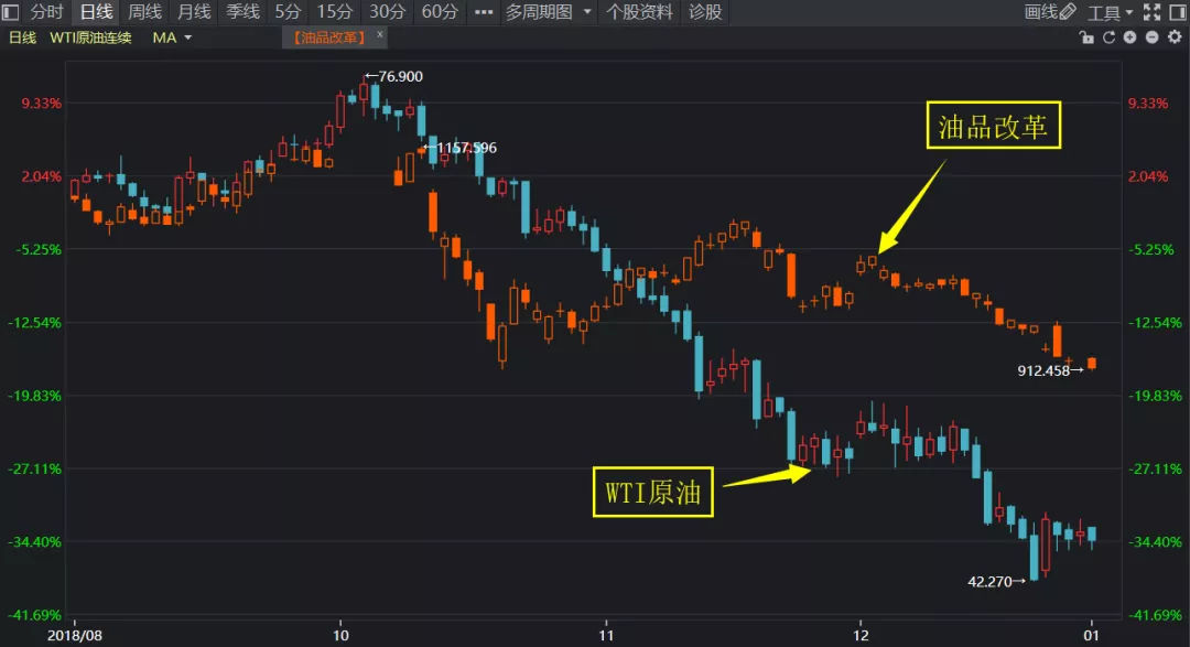 自10月4日以来,原油期货价格已经累计下跌了38%,油品改革板块指数也跌了20%。如若原油价格企稳反弹,那么相关板块也必将起舞,而且会明显强于市场其他板块。