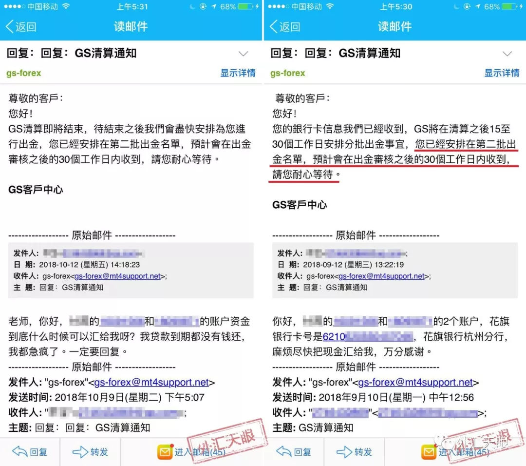 外汇天眼在以往的曝光文章中曾多次连载曝光GS-Forex ·高盛国际存在私自封停账户,拒绝出金等问题,并提醒大家远离。但近日,天眼还是接到众多投资者举报GS-Forex ·高盛国际(以下称:高盛国际),宣布清盘后出金没有到账,且目前网站关闭,客服失联投资者实名举报高盛国际