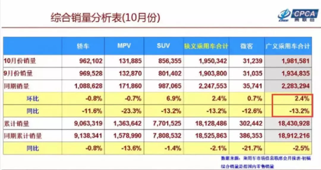 我国的销量呢?10月份,乘用车销量同比下滑13.2%,创7年内最大降幅,连续四个月负增长。今年可能创下尴尬的销量纪录,20年来乘用车首次年度下滑!
