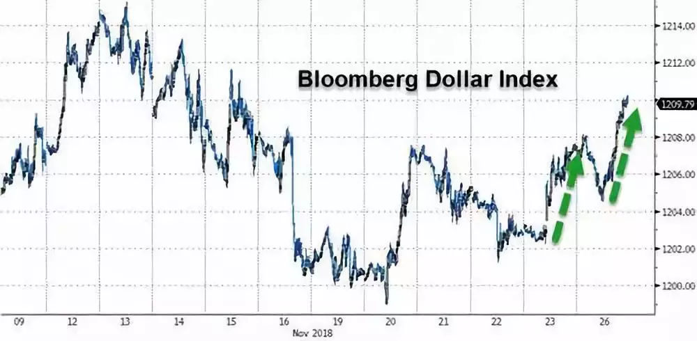其中,衡量美元兑G10货币表现的彭博美元即期汇率指数上漲0.2%,报1,210.0