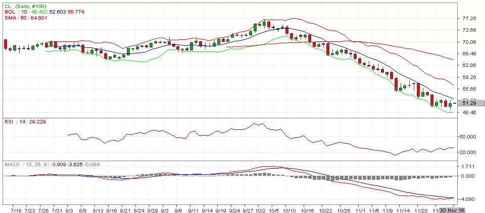 从日线图上看,油价隔夜震荡收涨,一度失守 50 关口。技术指标上,MACD 看跌动能柱微缩,RSI 指标依旧超卖。后市来看,油价支撑目标考验 50 心理关口。上行方面,油价初步阻力位依旧看向 53.00一线。