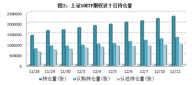 12月11日,50ETF期权合约总持仓2338628张,较上一交易日增加4.76%;持仓认沽认购比0.75,上一交易日为0.76。