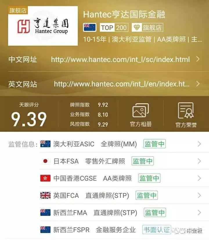 天眼综合评分高达9.39分,亨达国际金融投资有限公司是亨达集团的子公司之一,主要负责香港以外的投资业务。随集团在海外多年的努力,亨达已发展成为一家在国际上享负盛名的投资公司,备受国际认可。