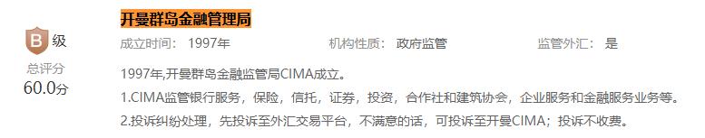 那么问题来了,为什么说他有风险呢,因为他针对中国用户的监管是开曼群岛金融管理局(CIMA),不是行业最权威的FCA和NFA,CIMA监管比较宽松,在所有监管机构中排名30多位,
