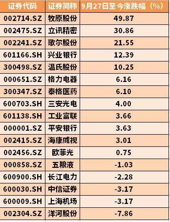 图2:北上资金“自救股”9月27日至今涨跌幅