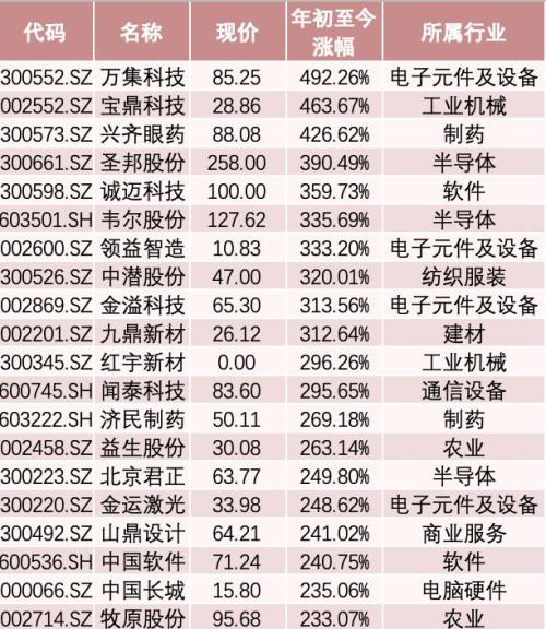 今年以来,两市已有171只翻倍股,占全市场的比重近5%,涨幅超过50%的个股更是多达549只,占比近15%。
