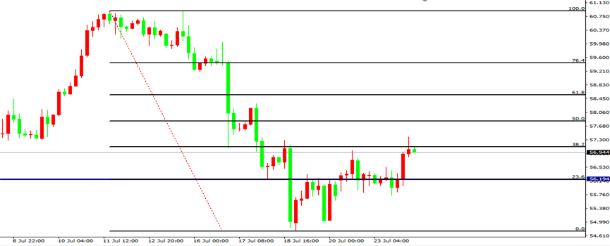 目前油价的走势受宏观经济面的影响比较大,昨日国际货币基金组织将2019年全球经济增速预期下调0.1%至3.2%,把2020年预期下调0.1%至3.5%,为自去年10月以来第四次下调。IMF降低全球经济增速前景,认为下行风险增加,并表示全球经济增长放缓、核心通胀率下降,重新引发了通货紧缩的风险。从技术面来看,宏观经济面决定了原油不太可能会出现趋势性上涨,总体仍维持在50-60美元区间,4小时级别上目前油价上涨的节奏三浪式上涨,所以我们仍要小心原油有可能会重新测试低点,日内建议投资者高位不要去追多,我们仍选择在低位做多的策略。