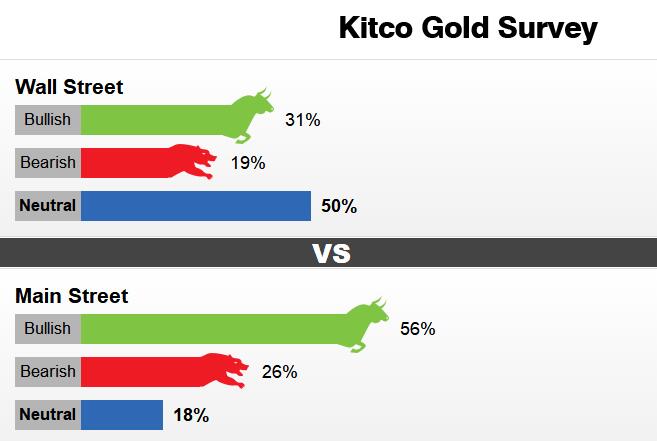 Kitco上周五发布的每周黄金调查显示,华尔街分析师预计区间波动将加剧黄金市场的观望情绪。同时,散户乐观情绪触及三个月低点。