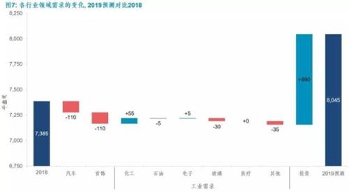 虽然印度、东南亚、拉丁美洲和东欧的玻璃产能都在增长,但因为世界其他地区的需求都有所降低,预计2019年玻璃制造行业中铂金的使用量将下降12%,至21.5万盎司。与2018年相比,尽管今年预计在世界其他地区会有相同数量的新建玻璃厂和扩建项目,但其中许多项目预计将于2019年初完工,这意味着所需的部分铂金可能已于去年年底就采购完毕。因此,该地区一些新设施的兴建时间实际上是牺牲了2019年的需求,而早在去年就已经提振了对铂金的需求。