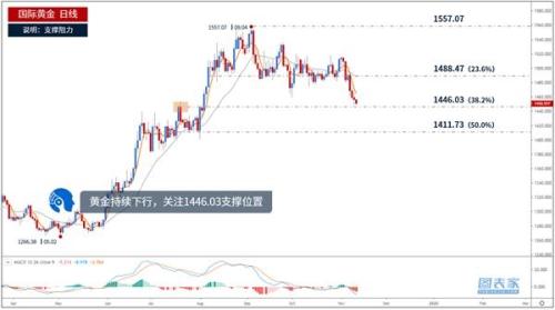 若价格继续走低,下方支撑位见斐波那契38.2%回调位1446.03,进一步支撑位见斐波那契50.0%回调位1411.73。