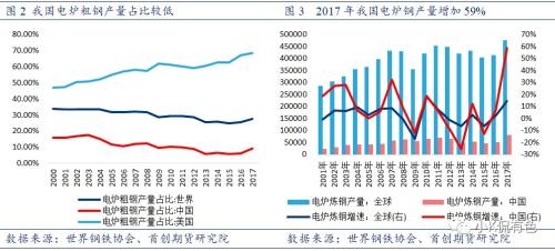 目前我国短流程炼钢占比相对较低。2017年全球电炉粗钢占比达到30%左右,美国更是高达68%,而我国电炉粗钢占比仅仅只有9.3%,不过从增速来说2017年电炉钢产量增加59%。钢铁行业供给侧结构性改革,去“地条钢”,取缔中频炉,导致短期内废钢过剩,随着环保限产常态化,废钢成为既满足环保要求又能提产增效的首选,在钢铁产业链愈来愈发挥重要的作用,长流程钢厂加大了转炉废钢加入量,新增电炉产能炼钢,这也是17年我国电炉钢产量剧增的内在因素。
