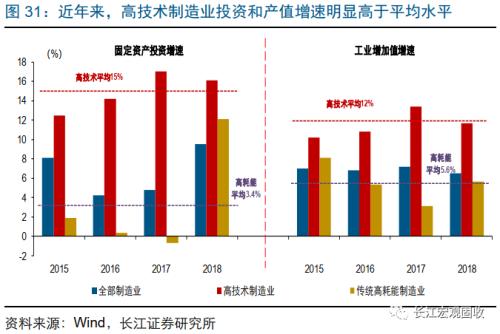 股票投资而言,多以“结构主义”视角重新审视宏观经济对投资的指引,关注产业结构、消费习惯等变化在资本市场的映射。“转型攻坚”阶段,总量特征逐步弱化,转型升级特征逐渐凸显。近年来,部分高技术制造业投资和产值快速增长、增速明显快于制造业平均水平,产业转型升级持续推进;同时,食品等生存型商品消费占比趋势性下降,而反映更高层次需求的教育文化娱乐等发展享受型服务、医疗保健服务,占比一直在上升,消费升级的逻辑也一直在演绎。