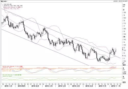 全球经济可能放缓的迹象”令人担忧”,美联储正在关注楼市及其可能放缓的情况。另外,美国经济”非常强劲”给美元带来上行压力,并导致新兴市场金融环境收紧,而减税和增加支出带来的刺激可能在”来年左右”减弱。鲍威尔讲话后,美元波动不大,此前连续两日下挫,因投资者了结获利。美元指数处于上升通道的上沿,下方支撑为96.3。须关注今晚的美国零售销售数据和英国特蕾莎梅和欧盟达成的脱欧初步方案在经过内阁通过后能否再通过议会批准。如果顺利通过议会,预料英镑和欧元都会大涨,促使美元回调,利好黄金。技术图上,黄金受到了日线布林带下轨1200美元支撑反弹,上方压力为1210、1220美元。下方支撑1200、1180美元。建议在区间内进行高抛低吸操作。