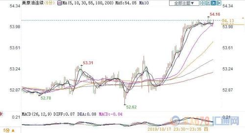 美国WTI 11月原油期货电子盘价格周四(10月17日)收盘上涨0.74美元,涨幅1.39%,报54.10美元/桶。油价周四上涨,此前美国成品油库存大幅减少提振油价,但原油库存增幅大于预期和一系列疲弱的经济数据抑制了油价的涨幅。