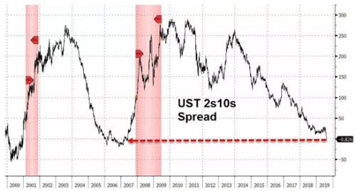 周三美国2年期和10年期债券收益率差自2007年5月以来首次倒挂,与此同时30年期国债收益率创下历史最低水平,显示投资人担心全球最大经济体可能正走向衰退。