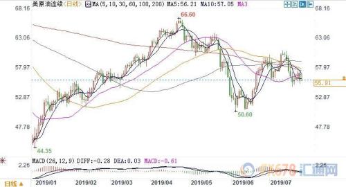 美国WTI 9月原油期货电子盘价格周四(7月25日)收盘上涨0.03美元,涨幅0.05%,报55.91美元/桶。油价周四小幅走高,受欧美国家和伊朗之间紧张局势加剧以及美国原油库存大幅下降的支撑,但由于对经济增长放缓可能减少燃料需求的担忧挥之不去,油价涨势受限。
