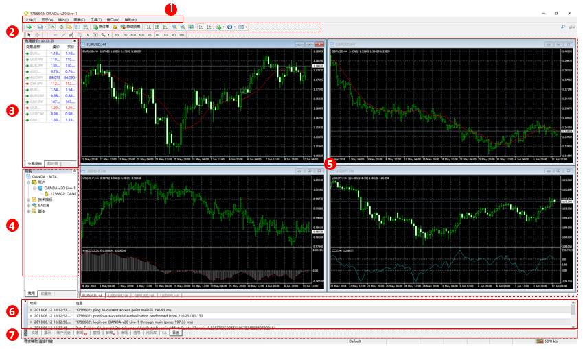 将介绍MetaTrader4 的画面构成和各部分的名称及作用。