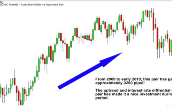 上图是澳元日元周图。直到最近,日本央行仍然保持了“近零”利率政策。澳元利率在主要货币中最高,大量的交易者选择进行日元套息交易,这也是造成澳元美元的原因之一。从2009到2010年间,澳元日元从5550升至8800,这是3/250的升幅。如果你把这一因素和澳元和日元利差因素结合起来,澳元日元对一些投资者和能够判断货币市场波动的交易者来说,有很好的长期投资机会。当然,经济和政治因素每天都在改变世界。货币之间的利差因素也发生了变化,这促使流行的流行交易,如日元套息交易,不再受宠。