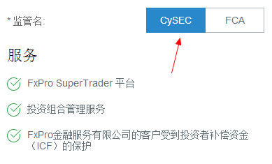 在FxPro官网上,注册真实账户的时候会要求选择CySEC监管还是FCA监管。默认选择CySEC监管账户。如果选择FCA监管,官网提示FxPro不支持银联出入金。