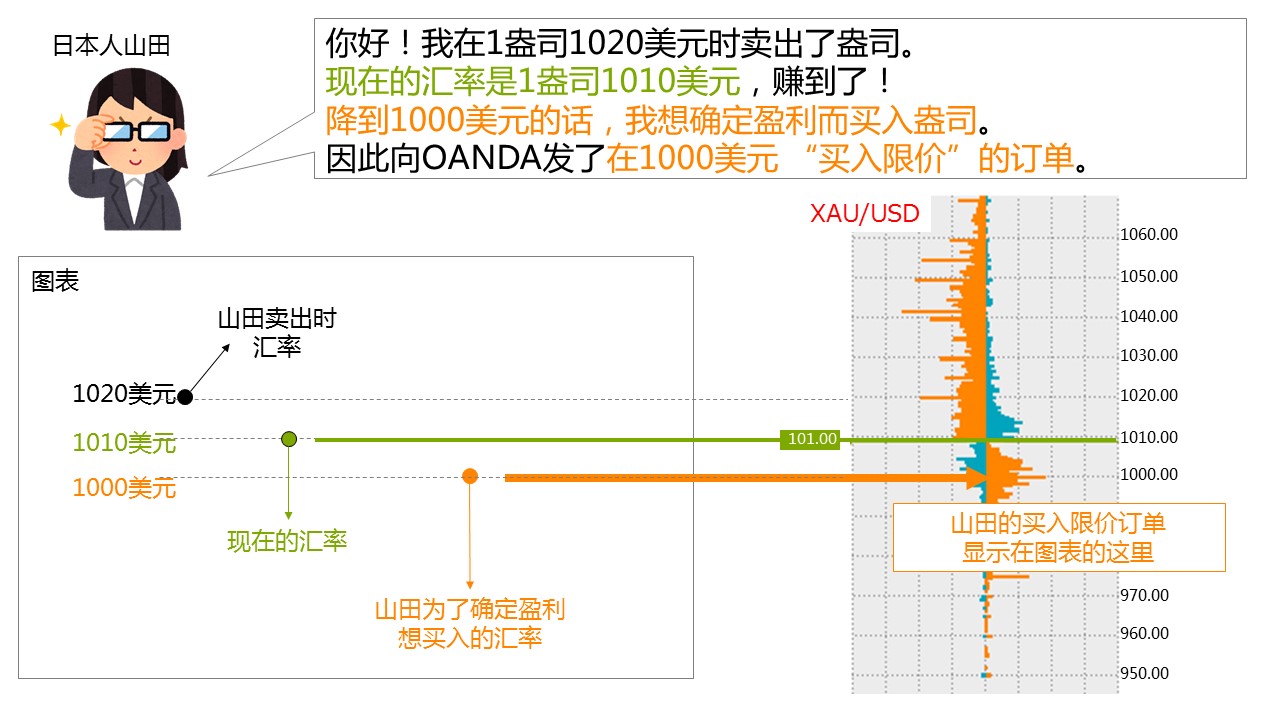 于是山田向OANDA 发出了 “达到1000日元就买入黄金”的买入限价订单。