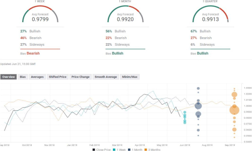 调查对本周美元兑瑞郎汇率预测中值为0.9799;未来一个月汇率预测中值为0.9920,未来三个月汇率预测中值为0.9913。
