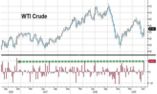 ☆能源:原油期货价格上周五上涨约1%,美国原油期货价格单周上涨10%,全球指标布伦特原油期货价格上涨5%,因市场担心美国可能会攻击伊朗,扰乱中东的石油供应。中东的石油产量占全球石油产量的五分之一以上。与此同时,美国汽油期货上涨4%,因美国东海岸最大的炼油厂Philadelphia Energy Solutions炼油厂发生大火。布伦特原油期货上涨0.75美元,或1.2%,收报每桶65.20美元,交投最活跃的美国原油期货收报每桶57.43美元,上扬0.36美元,或0.6%。