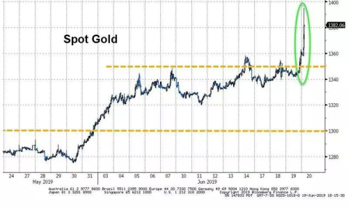 美联储决议后,隔夜黄金价格出现跳涨,在进入亚洲时段后跳升近30美元,金价一度触及逾五年高位1394美元/盎司。