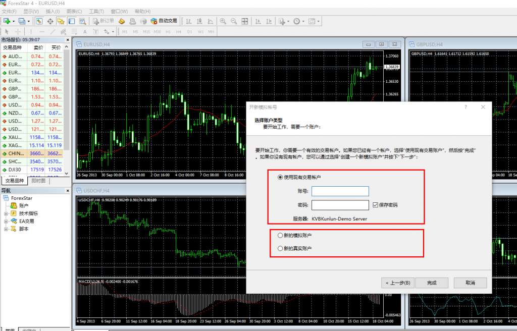 1.打开昆仑国际官网,选择开设账号,然后如图,选择外汇交易,根据实际情况点击开始真实账户和模拟账号