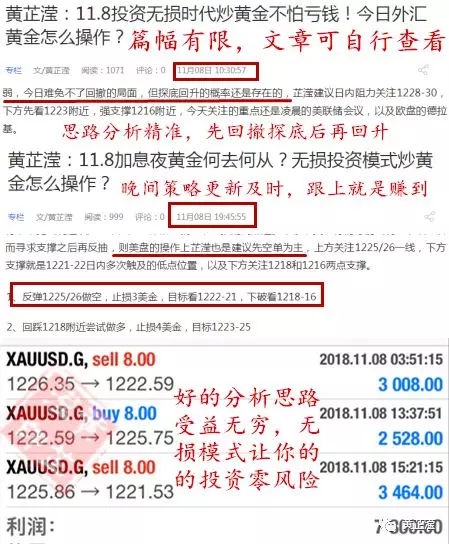 黄金价格周四的走势波动没有周三大,但不代表没有利润可拿,日内给出的思路是先回撤探底后会有回升,按照这个思路先空后多,芷滢分析的思路完全正确,两单都是获利离场。晚间策略也是及时更新,明确指出美盘操作做空为主,关注我的人想必都是有所收获,昨日操作三单没损一单,获利11个点,无损模式为投资路保驾护航。在行情比较弱势的情况下可能等待很久才有机会进/出场,投资者这时候需要耐心等候,拿不准你可以观望,以静制动,投资路漫漫,修心也很重要!