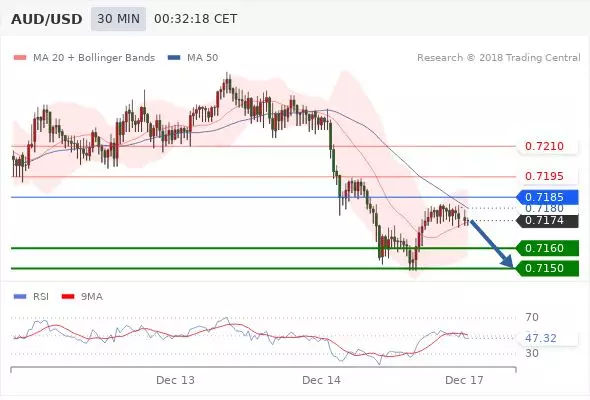在 0.7185 之下,看跌,目标价位为 0.7160 ,然后为 0.7150 。
