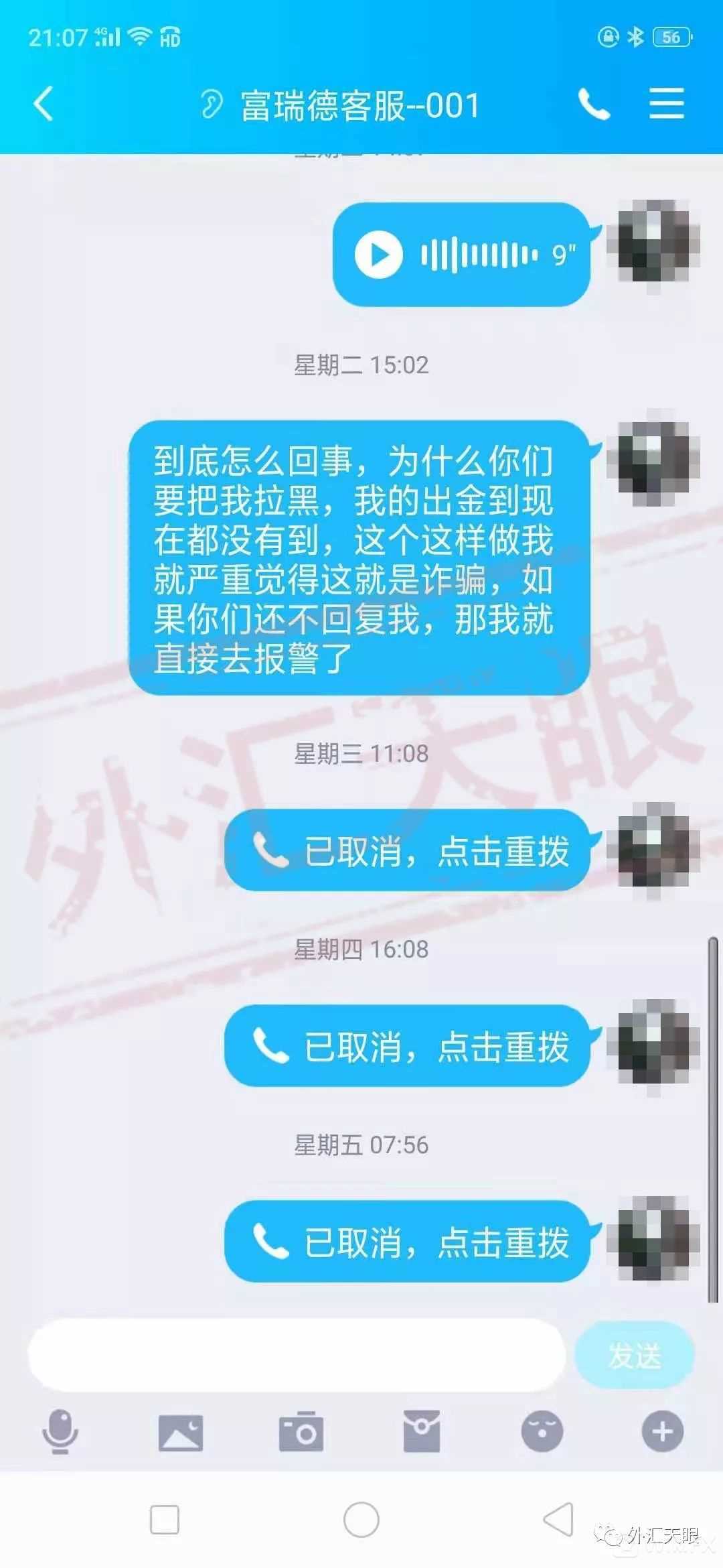 被封号的张女士表示,其在Furdfx富瑞德的出金迟迟未能到账,而此后其账号更是无故被封。张女士期间向通过邮件、客服QQ等方式进行问询,但都是石沉大海,没有回音。