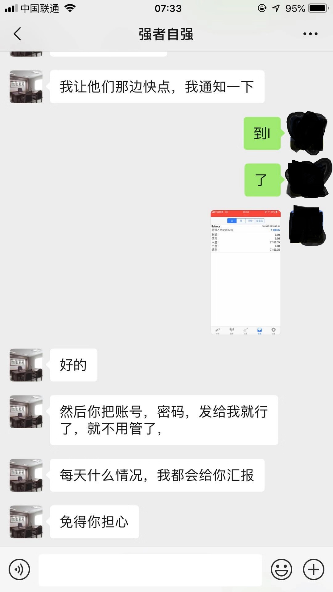 受骗详细经过:从2019年3月份被朋友拉进一个股票群,每天群主会在群里发一些股票的策略,觉得分析的还可以,所以经常在关注,后面股票自己操作亏损了,这个群主就介绍有个股票配资的公司,杠杆操作股票入了20万人民币,结果爆仓了,然后他又说股票现在行情不好了,不如做外汇,外汇可以24小时操作,随时买卖涨跌都可以,就开始做了这个外汇,一开始投了25000美金操作磅美,中间不断的加仓,喊反向单,吃客损,爆仓了,后面又开始做黄金,也是一样,重仓,扛单,喊反向单,吃客损,刷单,不停的加仓,还让我把帐户密码发给他,他来操作,结果入金的所有金额全部亏损完了。